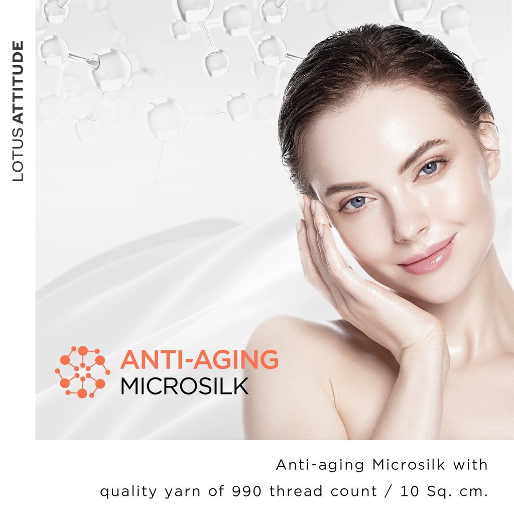 - Anti-aging MicroSilk fabric with a thread count of 990 threads per 10 sq. cm.